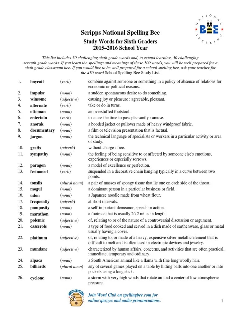 6Th Grade Spelling Words 2016 : Sixth Grade Spelling List Harcourt Trophies Theme 6 By Fresh Steps -. Discover our comprehensive first grade spelling curriculum with fun activities and vocabulary word lists to help build a solid foundation. Time4learning is an online studen. Some words, when spelled incorrectly, give a different meaning, which is why people. You probably haven't taken a spelling test since grade school. One of the best ways to teach children math is to present them with a problem to solve.